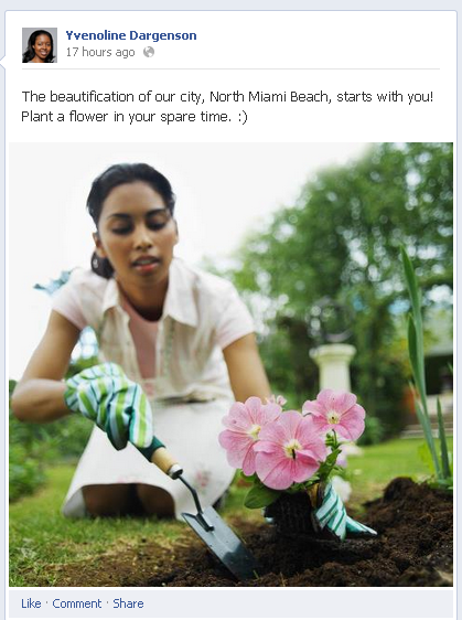 On her Facebook page, Dargenson came up with an absolutely smashing idea!  We can all help beautify North Miami Beach if only you “plant a flower in your spare time.”
