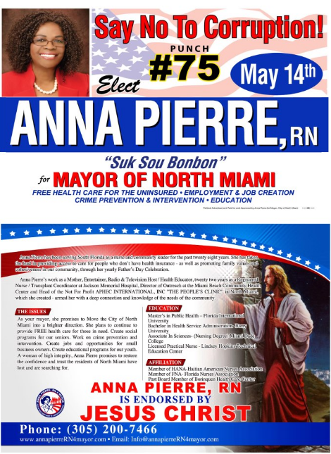 JESUS ENDORSES HER FOR MAYOR OF NORTH MIAMI!