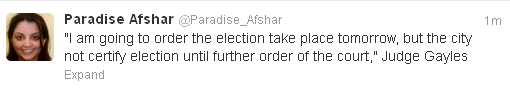 The judge isn’t going to stop the election but he will make a ruling depending on the outcome.