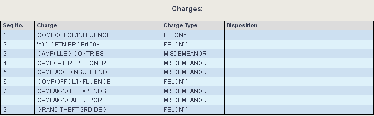 According to the docket of Circuit Court Case No. F12023663, The State of Florida vs. Myron Joel Rosner, the nine charges against him include four felonies and five misdemeanors, as follows: