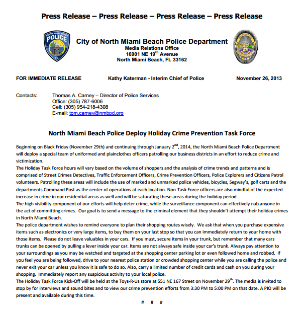 1 thought on “North Miami Beach Police Deploy Holiday Crime Prevention Task Force